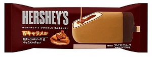 世界中で愛される「ハーシー」ブランドと女性に人気のキャラメルを組み合わせアイスにした商品。ハーシーブランドらしいビターチョコと、キャラメルチョコ・塩キャラメルソースの異なる味わいが一度に楽しめます。甘いキャラメルチョコレートコーチングと塩キャラメルソースのほのかな塩味がマッチ。外側のチョコを二層構造にすることでパリパリとした食感も楽しめます。希望小売価格は170円(税別)。