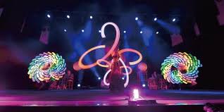 同社のキャラクター「はっぴぃくん」も登場するイベントは2部構成。第1部では、国内外で活躍するパフォーマーを集めた雷光炎舞「かぐづち-KAGUZUCHI-」が光と動きを融合させたパフォーマンスショーを披露。