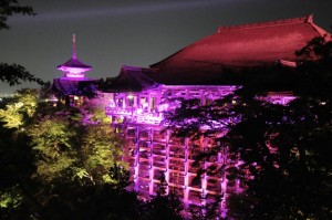「清水寺でピンクリボン点灯」