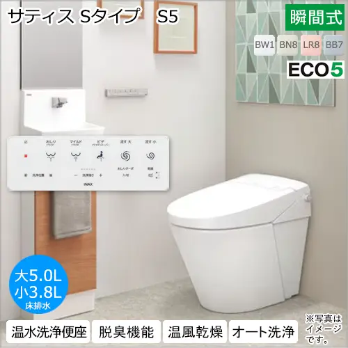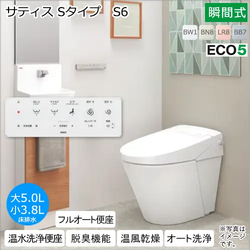 シンプルですっきりとしたデザインが人気のサティスSタイプ。S6は、近づくと自動で便フタが開き、離れると閉まる「フルオート便座」つきで快適にお使いいただけます。