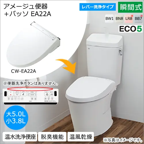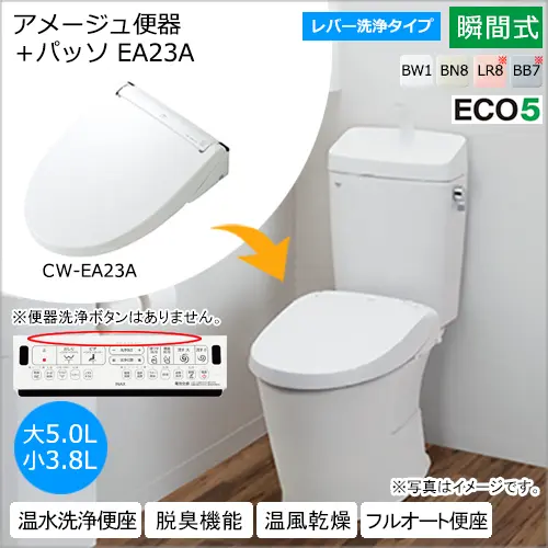 人気のパッソの便座セット。脱臭×除菌、キレイ便座などの清潔機能に加え、嬉しい温風乾燥つき。価格を抑えたレバー洗浄タイプです。