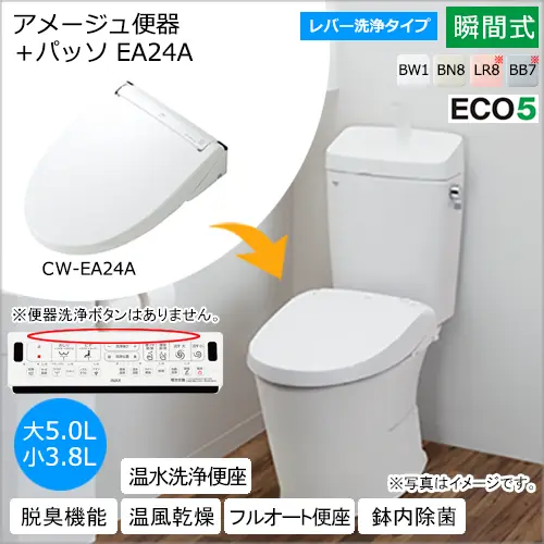 パッソの最上位グレード。鉢内除菌(便器鉢内まるごと除菌&においを消臭)がついているのはEA24グレードだけ!より清潔なトイレ空間をお求めの方におすすめです。
