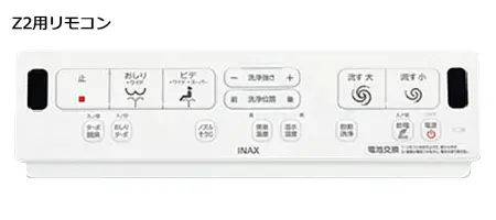 | 洗浄機能 | ・おしり洗浄(パワフル・マイルド) ・ビデ洗浄 ・おしりワイド洗浄 ・おしりワイドS洗浄 ・おしりマッサージ洗浄 ・スーパーワイドビデ洗浄 ・ワイドビデ洗浄 ・ノズル位置調整 |