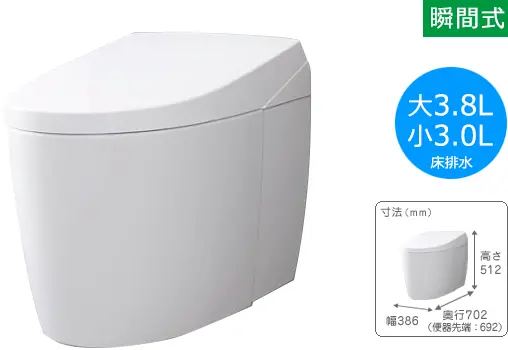 | 快適機能 | ・オート便器洗浄(大・小)※1※2 ・オートパワー脱臭 ・脱臭 ・リモコン便器洗浄(大・小) ・暖房便座 ・着座センサー※3 ・リモコン ・停電時安心設計 |